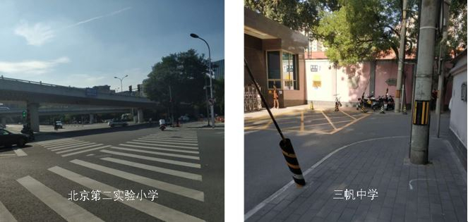 此外,各个学校也有自己面临的具体问题。北京第二实验小学邻近北二环,道路宽、车流量大,过街距离很长,容易出现一个红绿灯过不去,学生们挤在窄窄的路中安全岛上等红灯的情况。三帆中学校门设在道路拐弯处,易带来安全隐患。