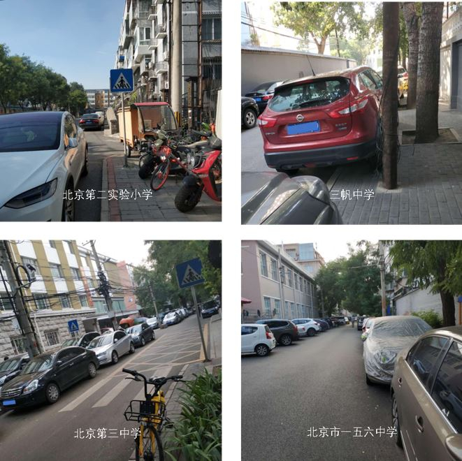 北京几所学校的机动车占道情况