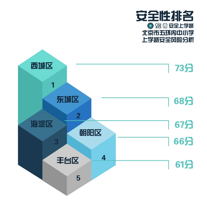 (6)西城区中小学上学路安全性最高。