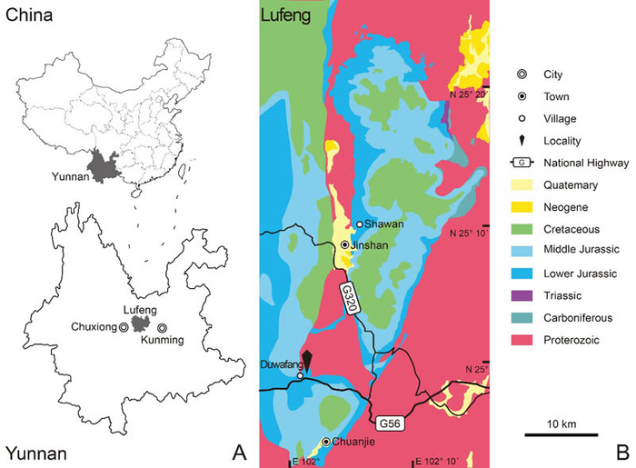 八十年前,“中国第一龙”——许氏禄丰龙(Lufengosaurus huenei)在云南禄丰被发现,随后的十余年间杨钟健在异常艰难的条件下对禄丰发现的恐龙及其它脊椎动物化石进行了大量研究,使之成为举世闻名的“禄丰蜥龙动物群”。云南禄丰及其周边地区的下侏罗统红层也成为世界上保存同期古脊椎动物化石最好的产地之一,为研究恐龙,尤其是基干蜥脚型类(basal sauropodomorph)的早期演化和辐射发展提供了重要信息。几十年间,对禄丰恐龙化石的研究络绎不绝,主要以基干蜥脚型类为主,但研究程度并不深入,许多新老材料亟待鉴定或重新研究。