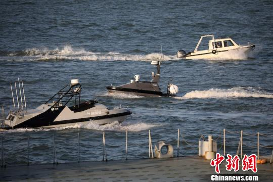 中新网南京9月11日电 (杨颜慈)机器人在绿色浮渡码头上机警地观察着,一架架无人机在空中变换着队形,无人船、渔船、摩托艇等在海面上往来穿梭……9月11日下午5点,在烟波浩渺的黄海之滨,“驿路祥云”智慧安防情境展在连云港港口集团国际客运码头举行。
