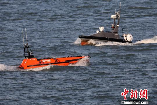 图为警方出动无人艇进行海上追捕。 泱波 摄