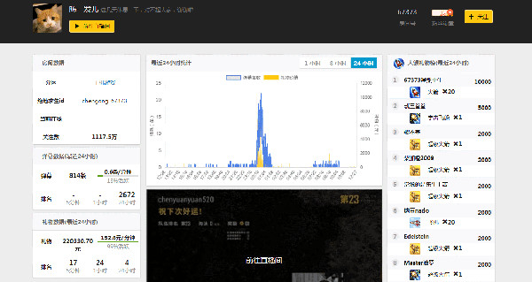 第三方数据平台显示,“陈一发儿”直播间9月11日凌晨一小时收礼12万余元。