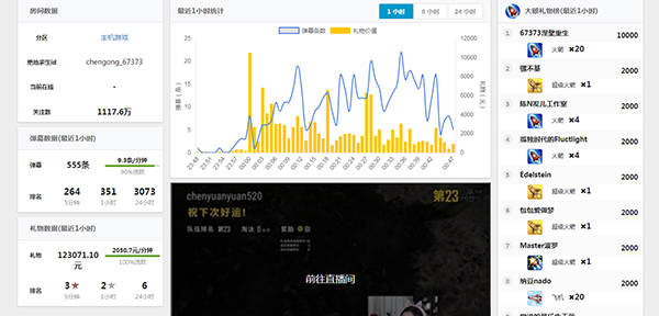 多个第三方平台统计数据显示,“陈一发儿”直播间的刷礼高峰出现在9月11日凌晨左右,在10日23:48分至次日00:47分一小时内,礼物数据达12.3万余元。9月10日中午12时至次日中午12时,粉丝送礼总额约22万余元,送礼内容包括超级火箭、火箭、宇宙飞船、飞机等。