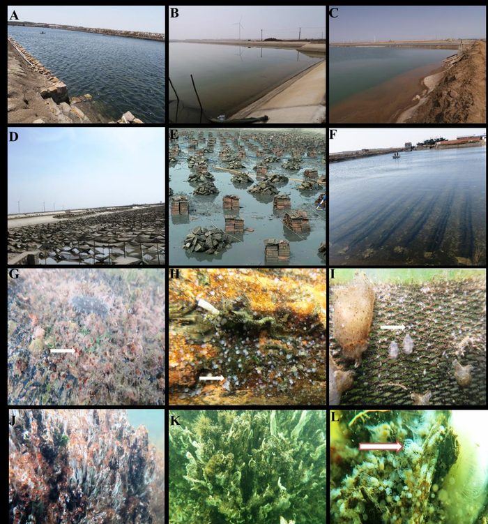 图3 黄渤海滨海养殖池的人工构建物为海月水母提供了大量附着基