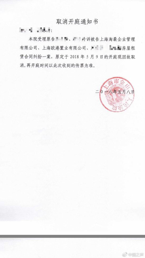 律师乔峰说:“第一次通知5月9日开庭,法院5月8日下午来电话,说审判长身体不适,律师当即表示了关心和慰问,理解法院,同意延迟开庭”。