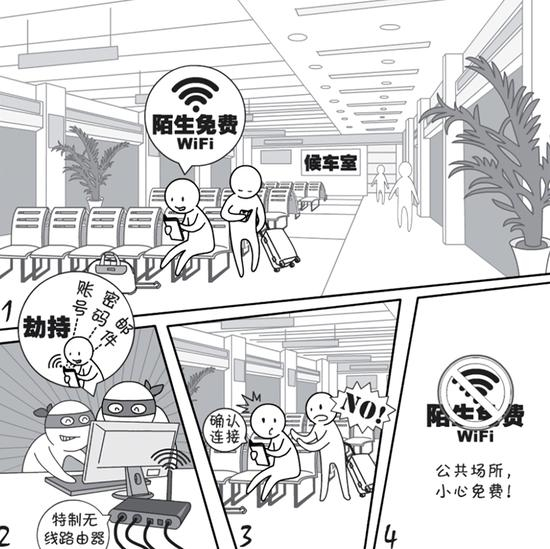 原标题:2018国家网络安全宣传周系列动漫①丨还在“蹭”免费WiFi?这些安全风险告诉你真能吓一跳
