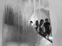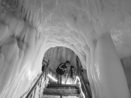 冰洞内四周全是冰,由冰形成的冰柱、冰帘、冰瀑、冰花、冰床、冰钟、冰人等千奇百怪,不一而足,且在五彩灯光的照射下呈现出梦幻般的景象。记者们进入洞中,驻足流连,拍下一个个神奇景观,并赞叹道:“真是太神奇了!”