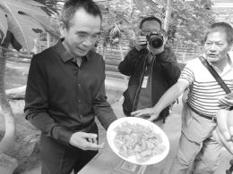 在大同创办企业已十年的台商刘宁诏以新鲜木瓜款待台湾记者。