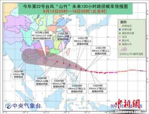 图为台风“山竹”未来120小时路径概率预报图。中央气象台 供图