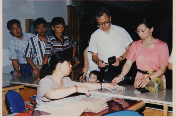 1996年,上海再就业服务中心为失业职工发放失业救济金。 本文图片均为上海市人社局 提供