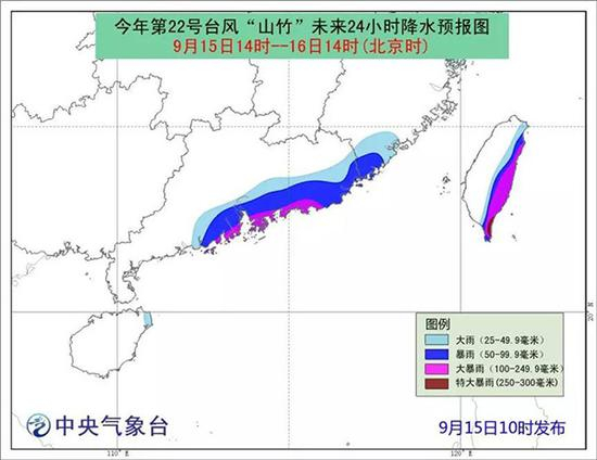 今年第22号台风“山竹”已于今天(15日)上午在菲律宾吕宋岛西北陆地减弱为强台风级,上午9点30分前后移入南海东北部,10点钟其中心位于广东阳江东偏南方950公里的海面上,就是北纬18.3度、东经120.3度,中心附近最大风力15级(48米/秒),中心最低气压945百帕,七级风圈半径380-500公里,十级风圈半径100-220公里,十二级风圈半径60-80公里。