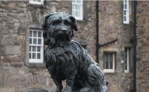 一位病重老人请流浪狗吃了一顿晚饭,老人去世,当送葬者把棺木抬到墓地时,它一直跟着队伍走,别人赶它,它也不走,不论大家怎么做,它都纹丝不动。从那时起,整整14年。它把人们感动了,人们设立雕像纪念它。