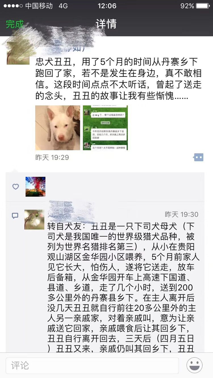 5个月后,丑丑徒行200公里从丹寨跑回贵阳得知丑丑失踪了,