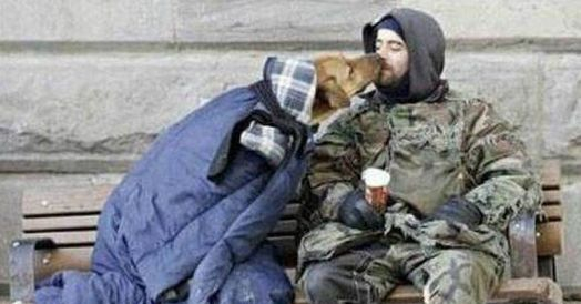 加拿大流浪汉在零下15℃用补丁的衣服把自己盖好,然后把唯一的财产睡袋给了他的狗狗-你若不离,我定不弃!
