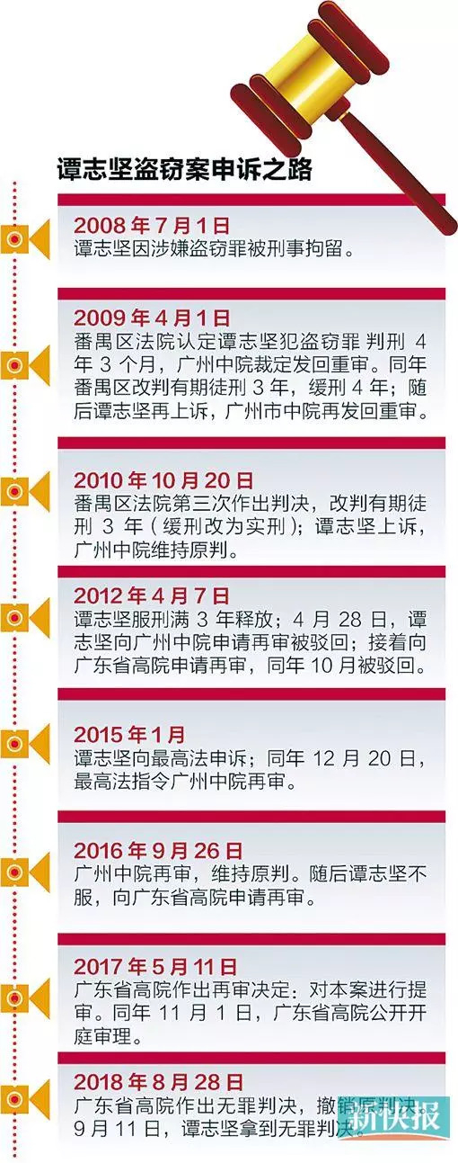 为此,番禺区法院认定谭志坚犯盗窃罪,判处有期徒刑4年3个月。随后谭志坚走上了自己漫长的申诉之路。