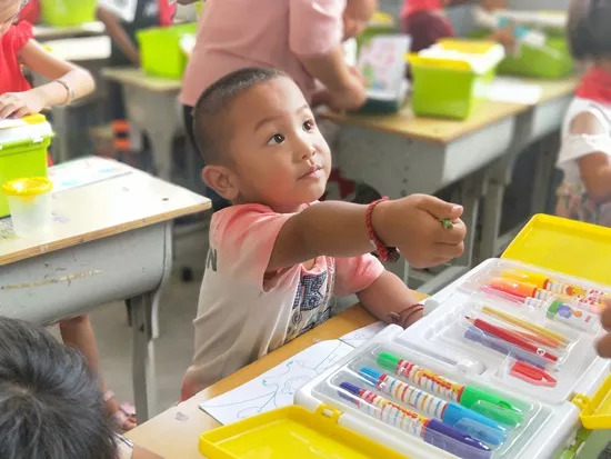 (安徽省怀远县泗湖村幼儿用绘画工具画画)