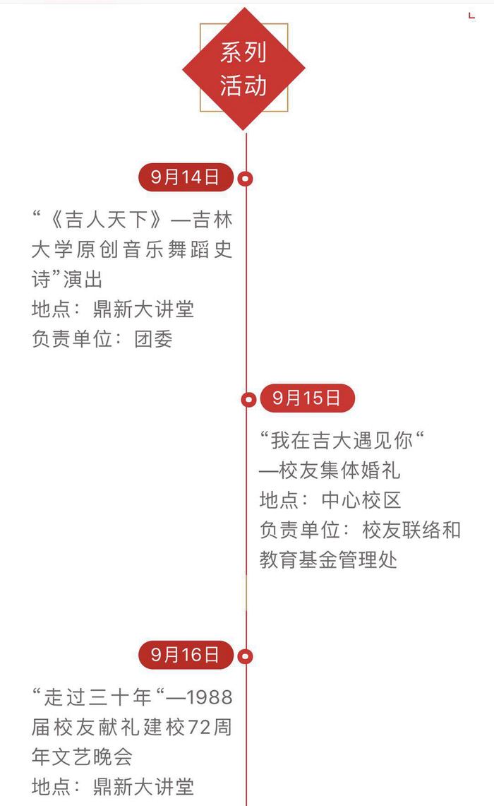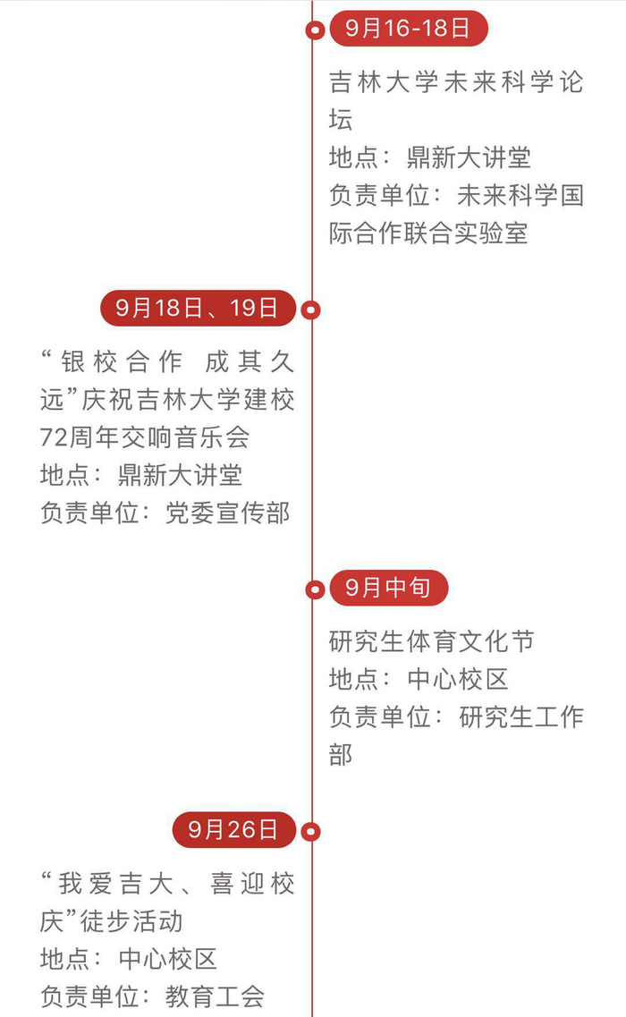走进新时代,全体吉大人以更加饱满的热情和更为艰苦卓绝的努力,正朝着既定宏伟目标和光荣梦想大踏步行进。为进一步总结历史,展望未来,学校筹备举办建校72周年系列纪念活动,总结反映吉林大学发展历程和突出成就,激励全体吉大人放眼未来、胸怀天下、锐意进取、开拓创新,为学校“双一流”建设,实现“两个一百年”奋斗目标和中华民族伟大复兴的中国梦不懈奋斗!