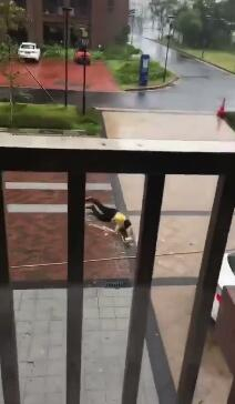 美团外卖小哥台风中送外卖被吹翻?实为高校学生