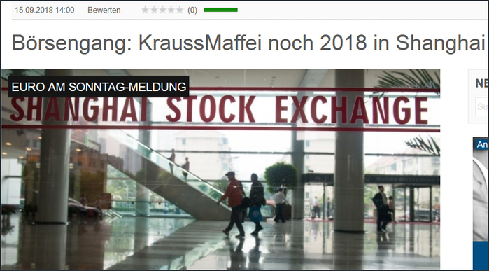 当地时间15日,德国金融杂志《星期日欧元报》(Euro am Sonntag)援引消息人士的话称,德国橡塑化机制造商克劳斯玛菲集团(KraussMaffei)将于今年晚些时候在上海证券交易所上市,目前上市过程正在进行中。“而且非常明确,克劳斯玛菲没有计划在法兰克福上市,”该知情人士说。