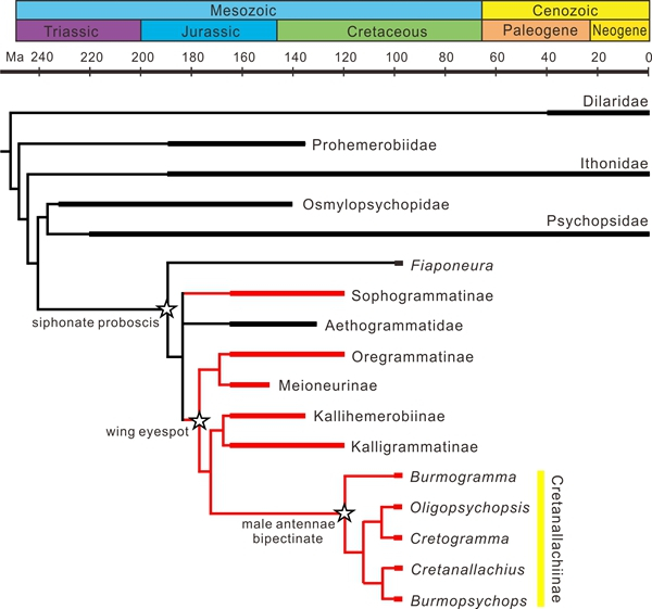 自从达尔文在1877年《兰花的传粉》一书中首次注意到传粉蛾类长口器与兰花花管的长度匹配关系,许多生态学家都报道了现生昆虫长口器与植物花管的协同演化关系。丽蛉是仅记录于中生代的一类脉翅目传粉昆虫,具有长口器。其口器与其取食植物的花管在长期的演化中形成了形态适应,即昆虫口器长度与其传粉的植物花管长度类似,因此丽蛉口器长度为重建传粉生态位提供了关键证据。本次发现的丽蛉来自于白垩纪中期的缅甸琥珀和中国早白垩世热河生物群及侏罗纪的燕辽生物群。不同物种丽蛉的口器长度在0.6至18毫米之间,其中缅甸琥珀中丽蛉口器长度在0.6至3.2毫米之间,而中生代沉积岩中丽蛉口器长度在5至18毫米之间。研究结果表明缅甸琥珀中不同种类的昆虫口器长度具有较高分异度,口器长度高度多样化反映了其取食植物和花管长度的多样性,表明传粉昆虫的生态位分化在被子植物快速演化之前已经出现。传粉生态位分化提高了传粉效率,进一步促进了白垩纪传粉昆虫和虫媒植物的演化。