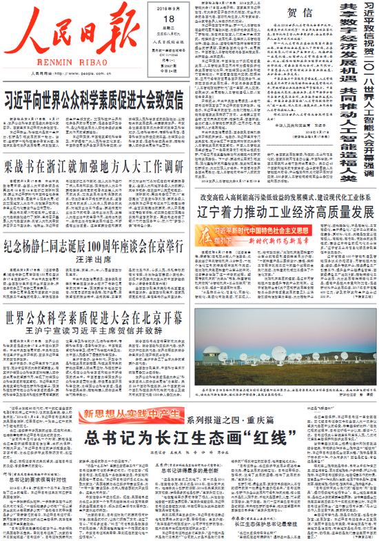 人民日报开设重要专栏“新思想从实践中产生”,今天刊发重庆篇《总书记为长江生态画“红线”》。