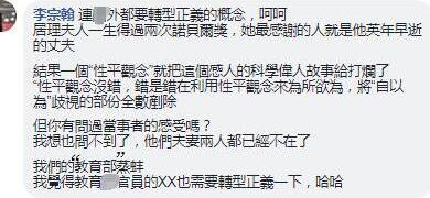 还有批评台“教育部”根本就是“唯我独尊的霸权心态”、“不尊重历史文化,却还奢谈‘性别尊重’?”;