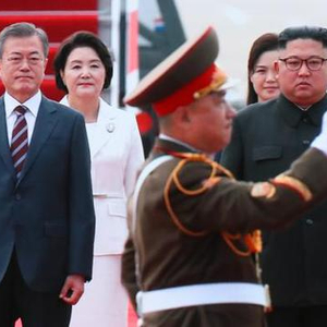 当天,韩国第一夫人金正淑、随行人员等共100余人规模的代表团与文在寅一同赴朝。根据韩国总统府17日公布的行程,韩朝领导人将在18日午餐后举行会谈。会谈结束后,朝方还将分别举行艺术演出和欢迎晚宴。
