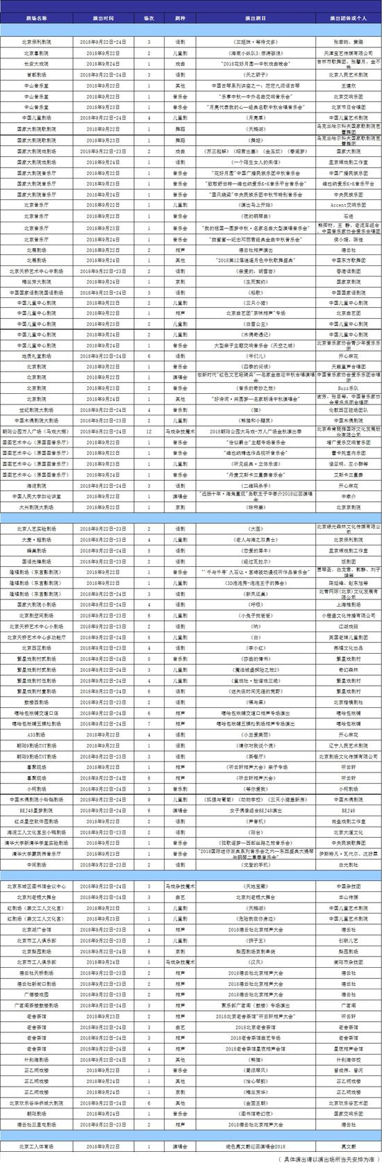 中秋节期间,将在68个演出场馆上演99台剧目、266场。