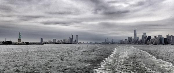 2018年夏,阴云下的曼哈顿和自由女神像。