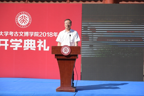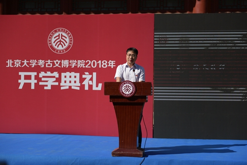 9月15日下午2点,考古文博学院在赛克勒考古与艺术博物馆中庭举行2018年新生开学典礼暨“时代楷模柴生芳”学生联合党支部授旗仪式。活动特邀嘉宾甘肃省定西市临洮县委书记石琳。北大党委组织部副部长唐金楠,北大考古文博学院原院长、博雅讲席教授赵辉,北大考古文博学院原院长杭侃,北京大学考古学研究中心主任徐天进,中国考古界唯一女特聘长江学者教授吴小红,北大考古文博学院学术委员会主任孙华、院长孙庆伟、党委书记雷兴山、副院长张剑葳、团委书记罗登科等以及2018级学院全体新生参加典礼,考古文博学院党委副书记户国栋主持。