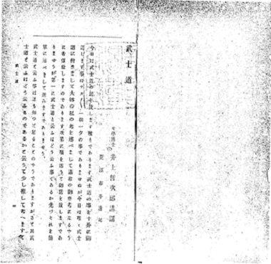 井上的《武士道》是一篇讲稿,由荒浪市平速记。据发行者介绍,“本书是为有志之将校,在陆军中央幼年学校,邀请哲学泰斗井上博士讲演,通过速记后,由博士校阅过的”(该书“例言”)。在这篇演讲稿中,井上提到了新渡户的《武士道》一书,对新渡户提出“武士道”没有经典的说法予以反驳。如他说:“最近,有位叫新渡户稻造的人用英文撰写了《武士道》一书,说‘武士道’没有经典,其实有经典,云云。”(该书第36页)因此,可以想见,这篇演讲稿与新渡户《武士道》的出版具有一定的关联性。