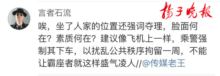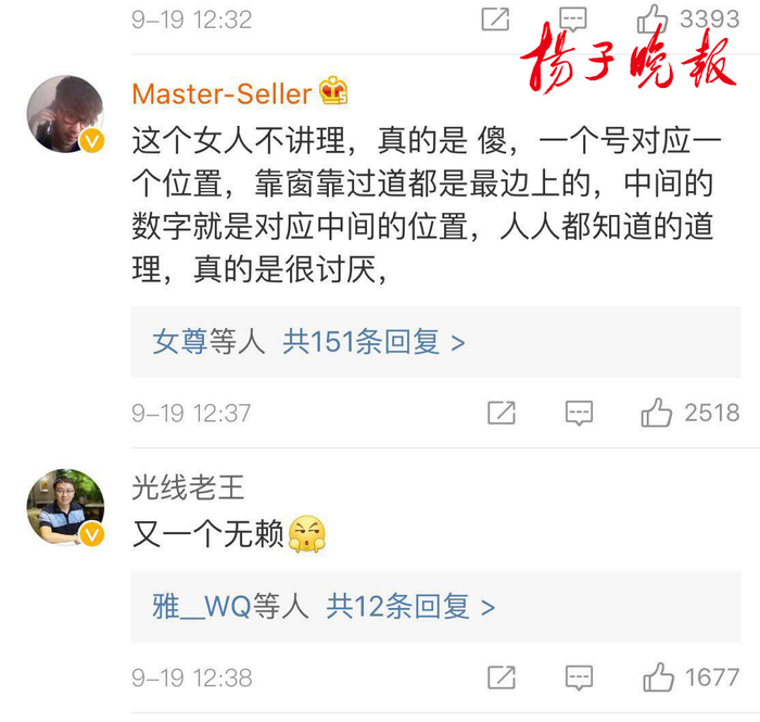 扬子晚报网9月19日讯(实习记者 艾陆琦)继前段时间高铁”霸座男“孙某因为强行占据他人座位,被限制乘坐所有火车席别并被限购车票180后,今天中午,又有微博大V@传媒老王接到网友私信拍摄的一个视频,视频中一个购买靠近高铁过道座位车票的女子坚持占据靠窗座位,并理直气壮德表示票面和座位上都没有标明具体位置,坚持不肯让座,引起网友热议。