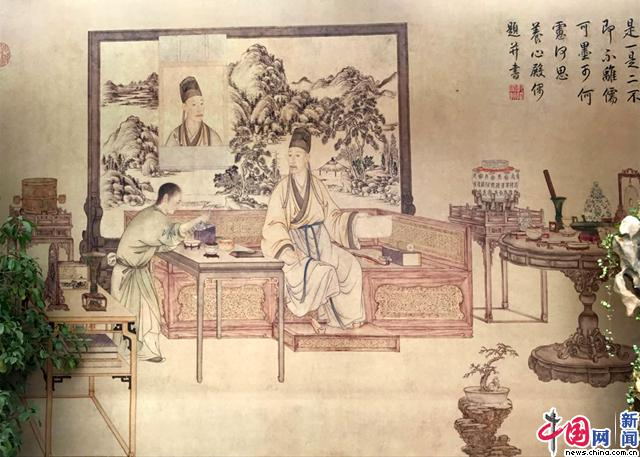 根据院藏《清人画弘历是一是二图》“原景重现”的乾隆皇帝起居内室,最为引人注目。乾隆舒适闲坐的卧榻,摆满古物的朱漆描金花卉纹葵式桌等宫廷家具,无不彰显着当时最高的工艺水准。观众身临其境、游走其间,似乎仍能感触当年帝王留存的温度,体验当年的盛世繁华。