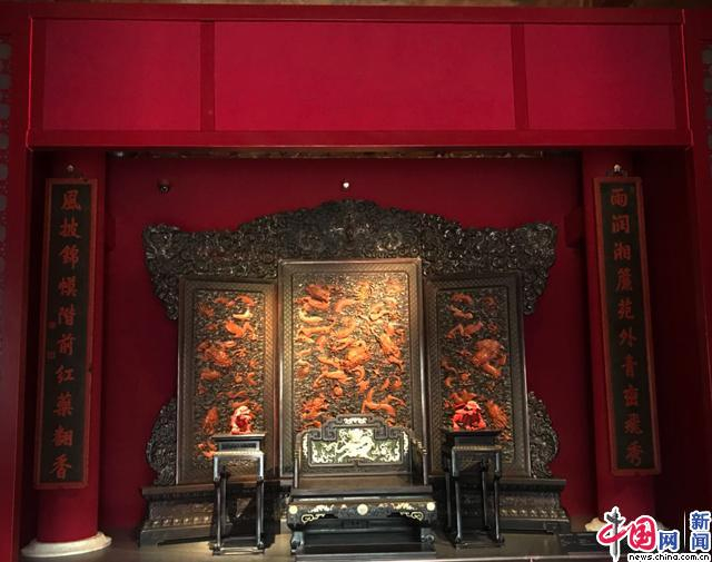 图为清中期紫檀嵌玉云龙纹宝座 摄影 中国网 苏向东
