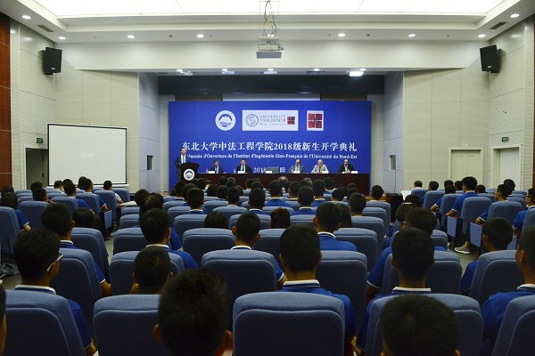 9月17日上午,中法工程学院开学典礼在主楼822室举行,学院首批96名新生在参加完东北大学开学典礼后又参加了一场具有独特意义的开学典礼。法国图卢兹大学校长Philippe RAIMBAULT和东北大学校长赵继出席典礼并致辞。