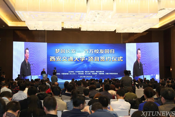 2017年12月,在西安市委、市政府的大力支持下,举办“梦回长安百万校友回归-西安交大专场签约项目仪式”。西安交大先期启动了驻市高校的校友回归工作,动员组织校友、校友企业和校友关联的社会企业积极参与大西安建设和创新港科技产业承载区的项目合作和投资,共吸引校友投资合作项目10项,总投资额1241亿元。