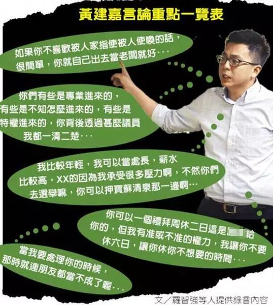 既然这内部录音都出了,屏东县政府和黄建嘉就是想抵赖怕是也不可能了。于是就在“蓝委”记者会后,不仅黄建嘉当天“神隐”、一改往日敢冲敢言的风格,连屏东县政府都快速设下防火墙止血:县府秘书长邱黄肇崇表示,黄建嘉坦承有失格局,19日上午已向县长潘孟安请辞获准,并自即日起生效,新的“观传处长”由参议高吉发接任、县府发言人由邱黄肇崇接任。