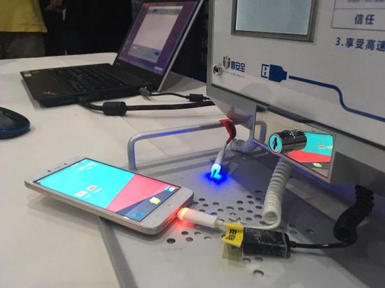在共享经济的热潮下,免费手机充电桩和共享充电宝越来越多地出现在公共场所。在位于中国(上海)创业者公共实训基地的2018上海网络安全展上,记者就留意到这样一个会盗取信息和窃听的木马充电桩。