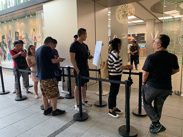 9月21日一早,上海,苹果各大零售店门口出现排队人群,他们是首批等待取新机——iPhone XS、iPhone XS Max的用户。