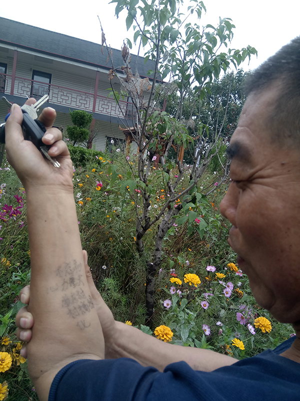 现在参加演出,吴英民习惯提前把新编的词儿写在胳膊上,方便记忆。他告诉澎湃新闻(www.thepaper.cn),年轻时身体落下了病,再加上记忆力也不行了,这个年纪已经不允许继续“霸占”着舞台了。他成立一个公司,公司的经营范围第一项就是“传统秧歌推广,培训、传承”。