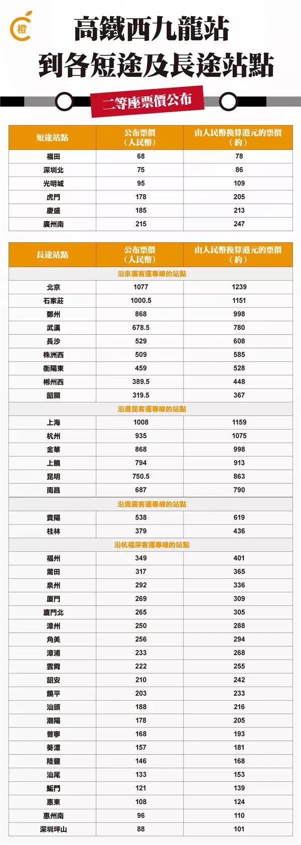 深圳北站到香港西九龙站票价为人民币75元,广州南至香港西九龙站票价为215元。从佛山西上车,到广州南再换乘,多花20元即可。