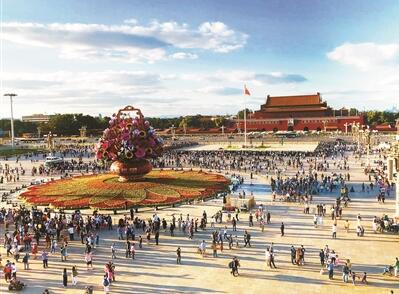 祝福祖国花篮绽放天安门广场 已连续八年献礼国庆
