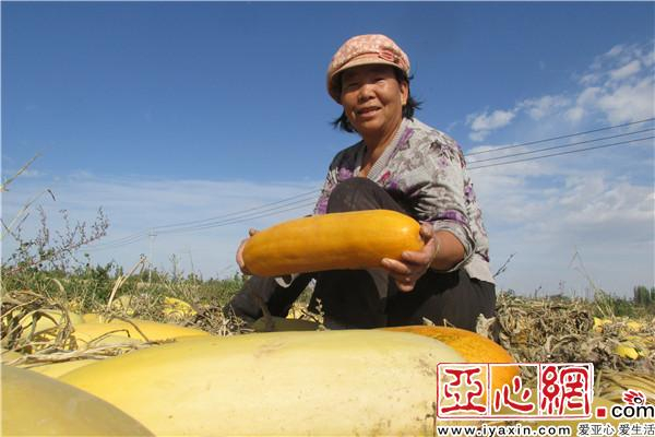 亚心网讯(通讯员 杨化光摄影报道)9月22日,新疆裕民县哈拉布拉乡加勒阿尕什村村民在收获籽用西葫芦(上图)。金秋九月,新疆裕民县哈拉布拉乡加勒阿尕什村村民种植的2000亩籽用西葫芦进入收获季节,预计亩产西葫芦籽200公斤左右,亩产经济效益达到2400元,籽用西葫芦瓜成为村民增收致富的“金瓜”。