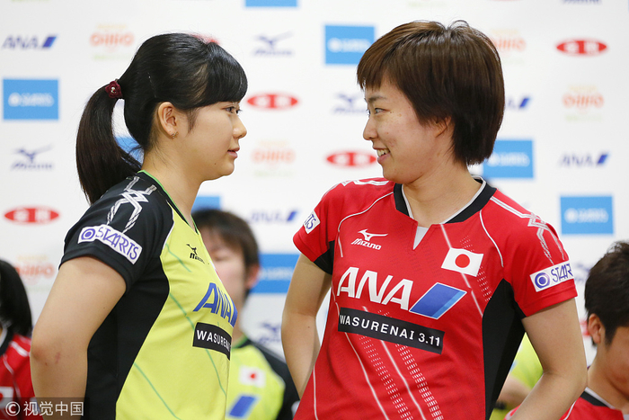 福原爱与石川佳纯。(图片来源:视觉中国)