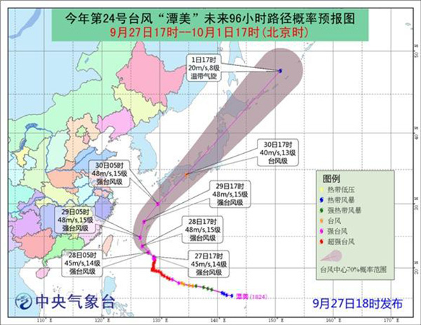 大型超强台风“潭美”将于29日接近冲绳奄美地区,随后本周日左右很有可能接近西日本地区。日本气象厅称,将会在冲绳地区对暴风和高浪加以警戒,同时也会确认台风到达的最新情况,并呼吁民众提早进行戒备。