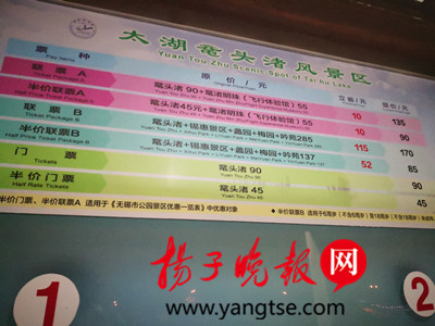 鼋头渚购票点上方游园价目表已经调整到位。丁波 摄