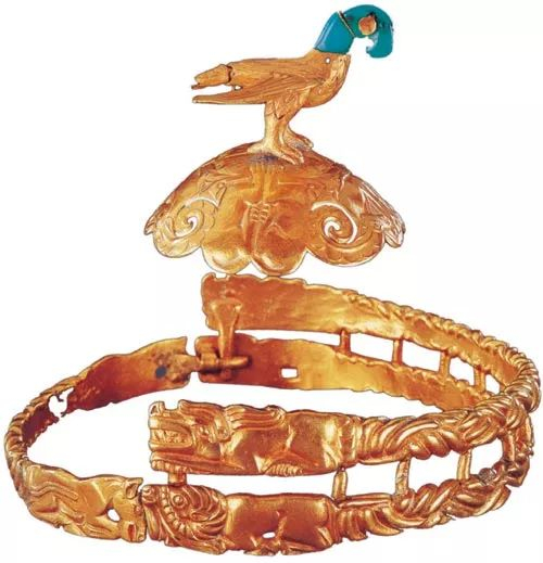 鹰顶金冠有“草原瑰宝”之誉,是迄今所发现的唯一的匈奴酋长金冠饰,代表了战国时期我国北方民族贵金属工艺的最高水平。