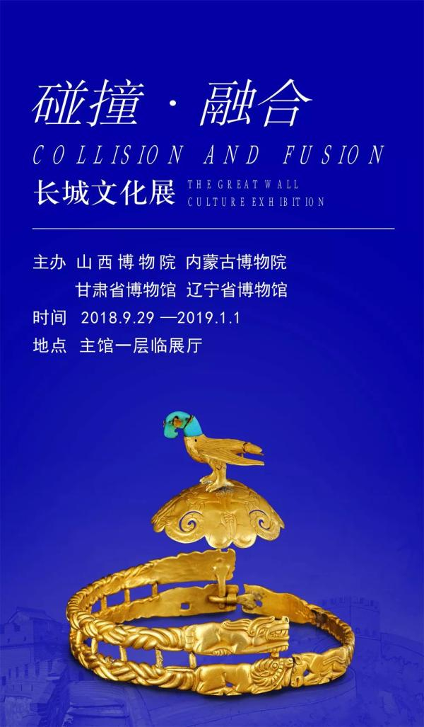 万里长城见证着中华民族发展的历程。1987年,联合国教科文组织将中国长城列为世界文化遗产。 中国政府历来重视长城文化资源的保护与利用。 9月29日起,由山西博物院、内蒙古博物院、甘肃省博物馆、辽宁省博物馆共同举办的 “碰撞•融合——长城文化展”在山西博物院开展。将展出内蒙古博物院的鹰形顶金冠,辽宁省博物馆的明代地图孤本九边图,甘肃省博物馆的东汉铜轺车和山西博物院的胡傅温酒樽等与长城相关主题文物276件。