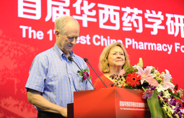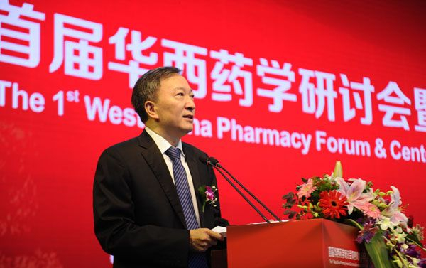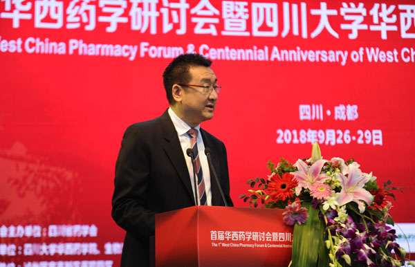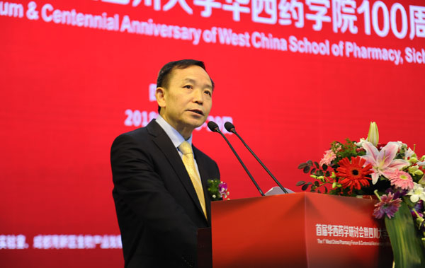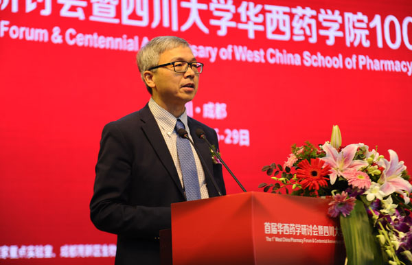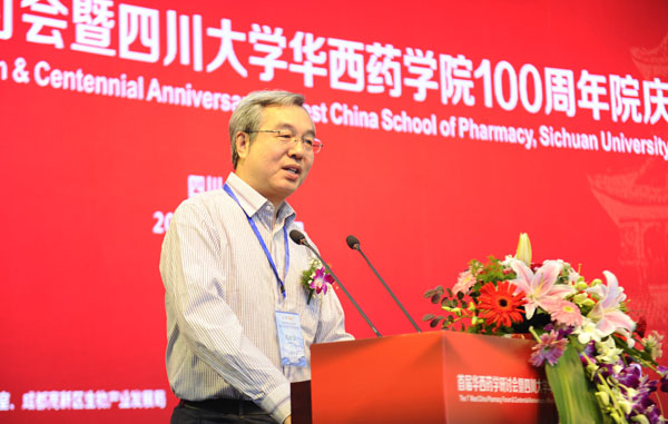 张礼和与中国药科大学副校长孔令义先后致辞,分别代表北京大学药学院、中国药科大学向共同的亲密合作伙伴——川大华西药学院迎来成立100周年华诞表示祝贺,表达了与华西药学院齐头并进,为药学事业科学发展、人类健康事业做出新的更大贡献的良好愿望。